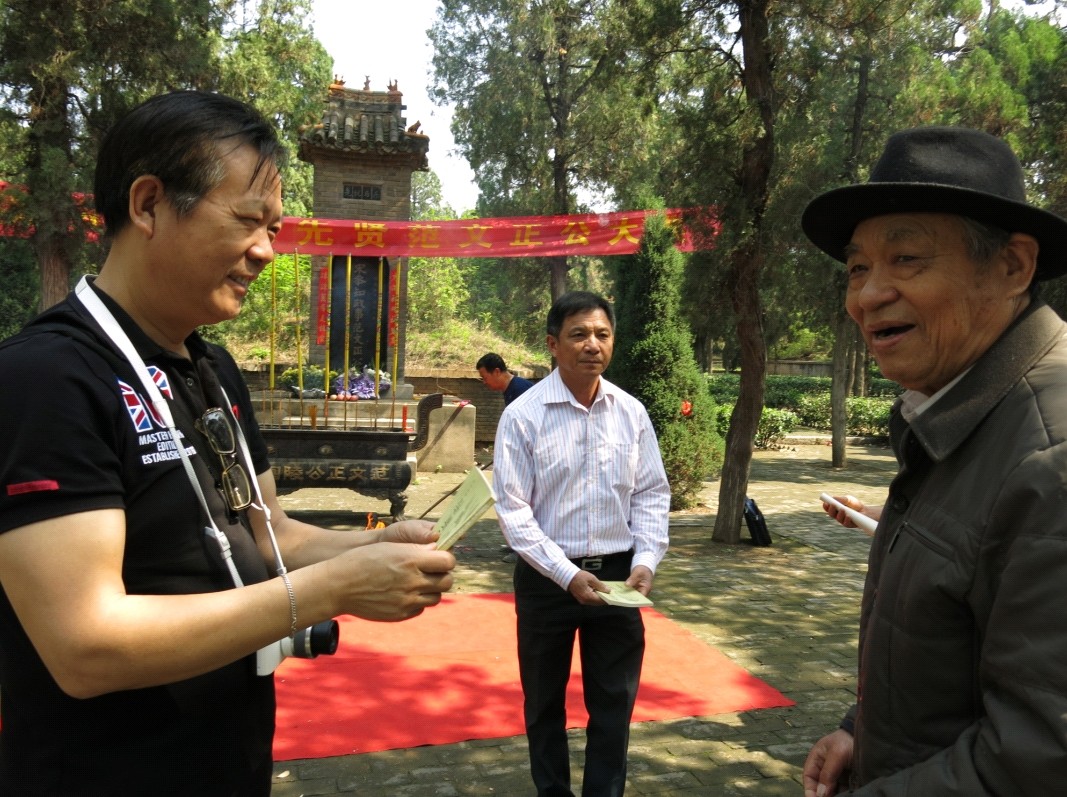 2014年4月22日上午,广东省佛山市南海区范氏宗亲范炎威、范立、范均荣、范桃到伊川县范园寻根拜祖。伊川范氏宗亲联谊会相关人员陪同。