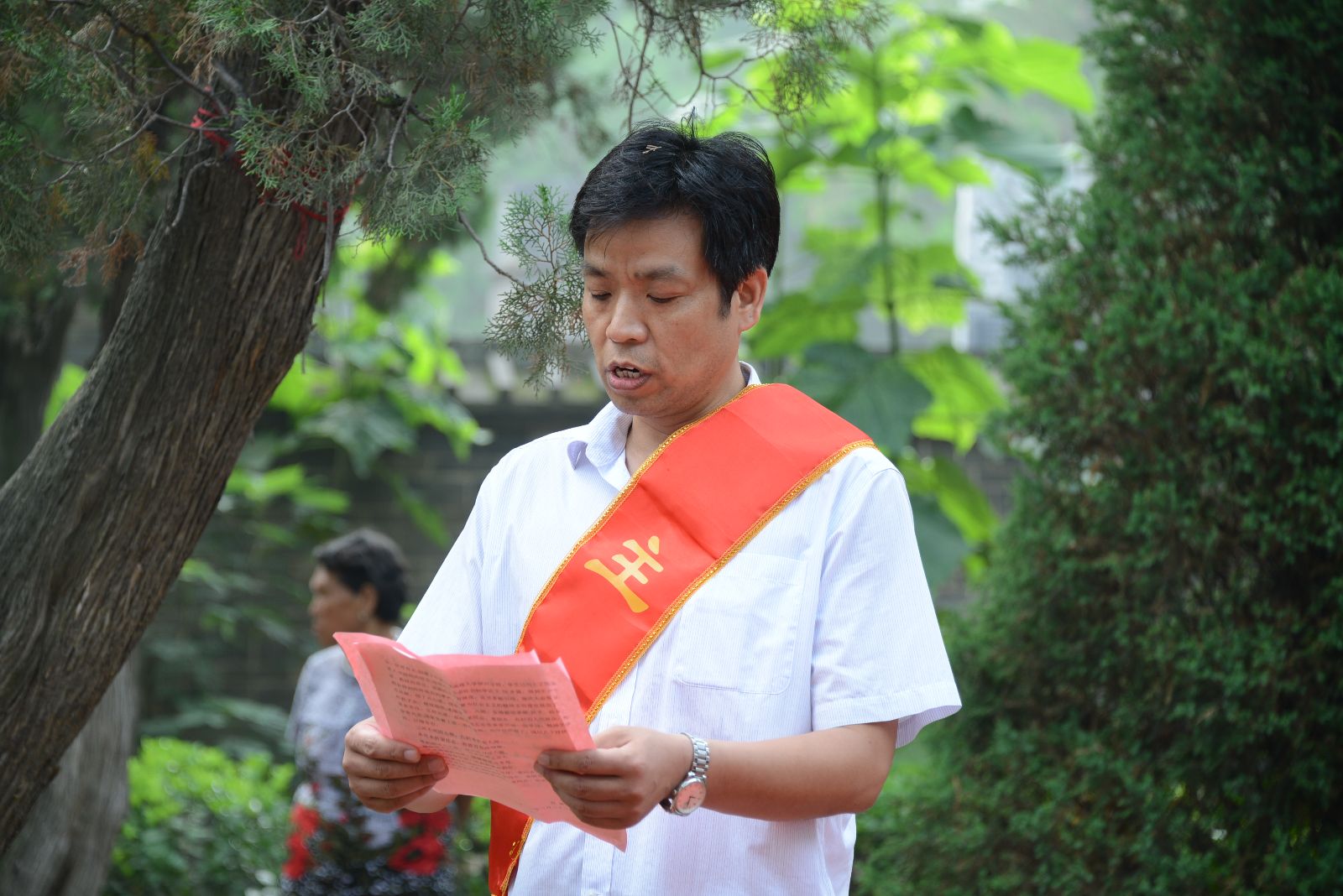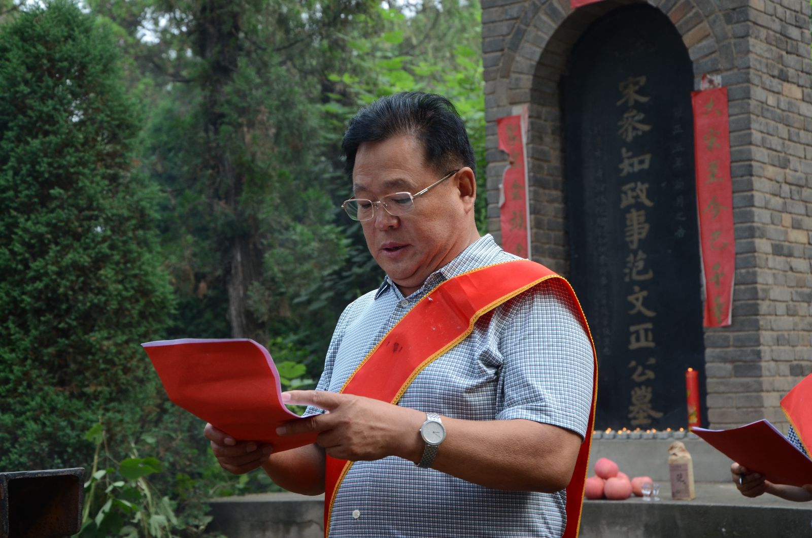 范国强教授在祭拜仪式上介绍了中国范仲淹研究会近年来的进展和情况。范国强教授说:中国范仲淹研究会自1998年在人民大会堂成立筹委会、2006年在文化部正式成立以来,已经举办五届国际论坛,15次国内学术大会,出版专著50余部,出版和发行期刊28期、140余万册,联络范氏宗亲捐赠全国希望小学48所,在人民大学、清华大学、中国社会科学院等设置奖学金2920余万元,并为国家和地方政府献言献策20余项,在全国、国家211高校、985高校、中央党校等地以“范公精神”做为内容演讲110场。中国范仲淹研究会2015年6月被评为国家AAAA级社团,可以申报国家基金,范梅艳宗亲第一个报名,表示首次投入800万,作为启动资金,成立我们国家级范仲淹基金。中国范仲淹基金会可以向全社会、海内外进行公募。基金会第一个项目就是现在正在筹划的“北宋文化村”,“北宋文化村”以许营村为主要的建设单位,在建设“美丽乡村”的同时,我们要造福许营村为守护范园祖祖辈辈做出牺牲和奉献的乡亲们。我们把范园保护性开发作为重要内容,融合到“中国美丽乡村”建设中去,让二者组合成为“中国北宋文化村”,目前已经与县政府、人大、政协的领导进行了三次的深度讨论。“范公精神”已经成为中华民族的魂,习总书记把范公看做是“以天下为己任”的人,在多次会议上论证:“在我心里,好干部,古有范仲淹,今有焦裕禄”。这是对我们先祖最大的褒奖,也是对范氏宗亲们最大的鼓励。范园应该成为中国当前干部、学生教育的圣地,爱国主义教育的圣地,中国文化的一张亮丽名片,全世界有学问的人向往的圣地,相信通过政府和全国、全世界的范氏宗亲的共同努力,这个目标一定能实现。