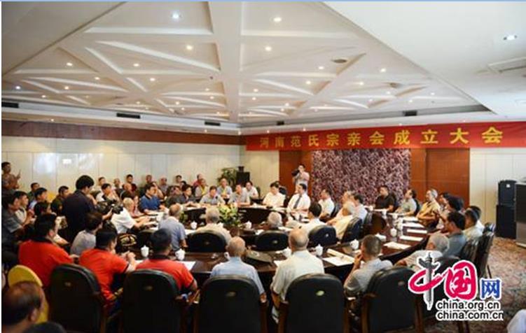 世界范氏宗亲联谊会会长范圣刚宣布成立大会开始,秘书长范飞宣布河南范氏宗亲会会长、副会长、秘书长及内设机构负责人名单,世界范氏宗亲联谊会副会长范振国当选河南范氏宗亲会会长,范霞通当选常务副会长、范校炜当选秘书长。