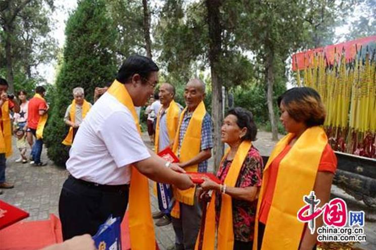 在范园,全体人员祭拜范文正公,仪式上范圣刚会长向长期不图名利的守护范园的范广强、赵春英(范钦中妻)、范成实、范玉锋宗亲颁发了荣誉证书及慰问金、慰问品。