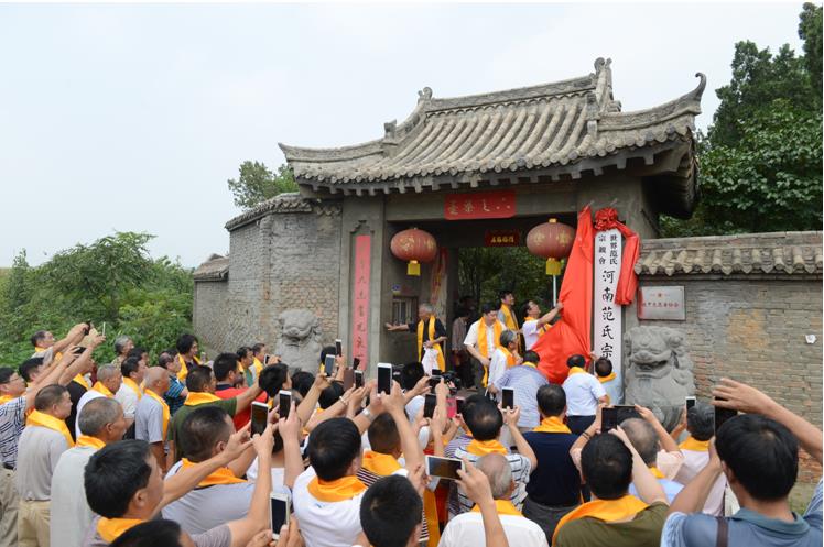 8月18日上午,世界范氏宗亲联谊会河南分会(河南范氏宗亲会)成立大会在河南省伊川县伊龙国际大酒店召开,并在范园举行了揭牌仪式。世界范氏宗亲联谊会会长范圣刚、副会长范振国、范存杰,秘书长范飞以及来自北京、山东、上海、安徽、辽宁、云南、广东、重庆、贵州、浙江等分会(宗亲组织)有关领导近200位范氏宗亲参加此次活动。