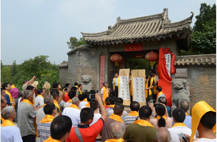 随后,范圣刚、范章、范振国、范存杰、范飞、范雪峰共同为河南范氏宗亲会揭牌。