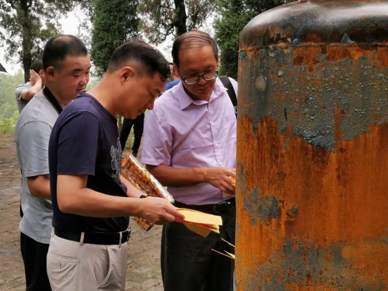 8月6日上午,安徽省范氏宗亲会会长范培顺、副会长范晓松、副秘书长范团结等宗亲和社会贤达22人冒雨到伊川范仲淹陵园祭拜先贤。