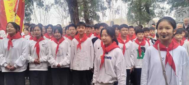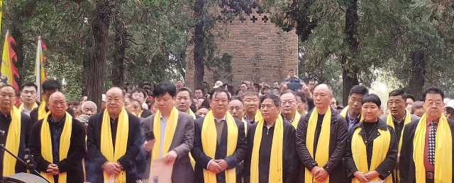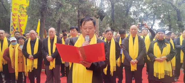 伊川县文正中学师生代表诵读《岳阳楼记》,全体人员礼拜先贤、先祖,向范文正公行礼九鞠躬。