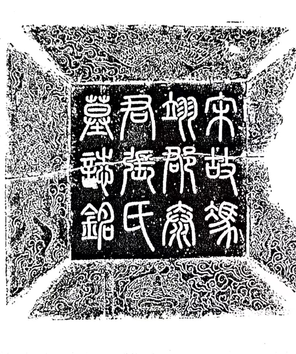 篆盖的文字为“宋故冯翊都太君张氏墓志铭”。关于此铭的说明文字为:元祐八年(1093)正月七日。盝顶盖。志、盖均长九二、宽九二厘米。盖文四行,满行三字。篆书。四刹为四神及云卷纹。志文四十行,满行四三字。正书。盖右边残缺。(现藏洛阳千唐志斋博物馆)