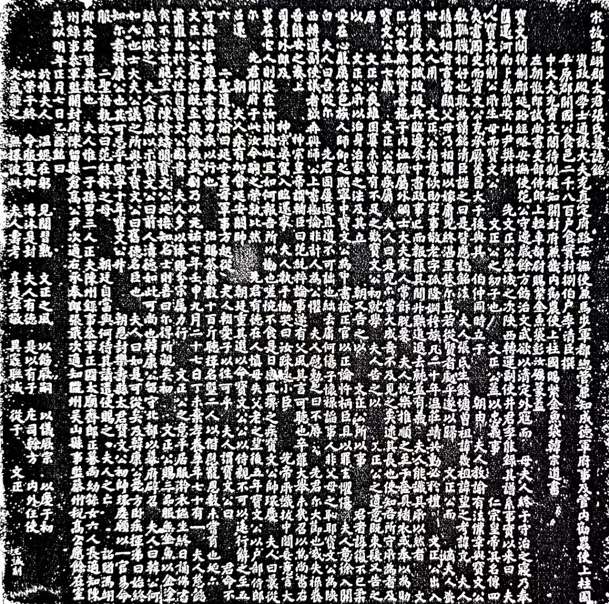 於惟夫人,温嫕在躬。見聞習(见闻习)熟,文正之風(风)。以飭(饬)厥嗣,以儀(仪)厥宗。 以慶(庆)于初,以榮(荣)于終(终)。命服是加,湯(汤)沐是封。夫人有德,是以有子。応司榦(干)方,内外任使。文武能之,無擇(无择)彼此。夫人壽(寿)考,享是孝敬。異(异)竁联域,