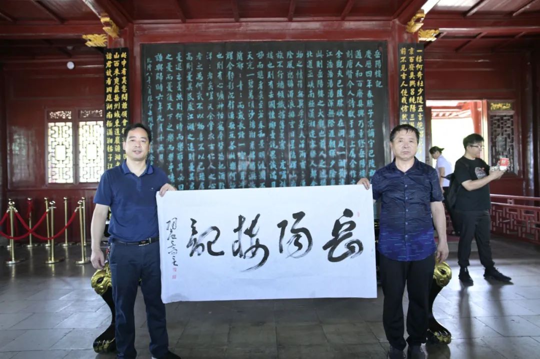 “今天,我将这幅66米的《千古名楼》书法长卷赠送给我的祖先写下千古名篇《岳阳楼记》的地方,希望先忧后乐的精神能继续传承下去。”