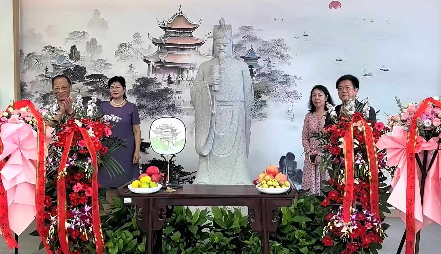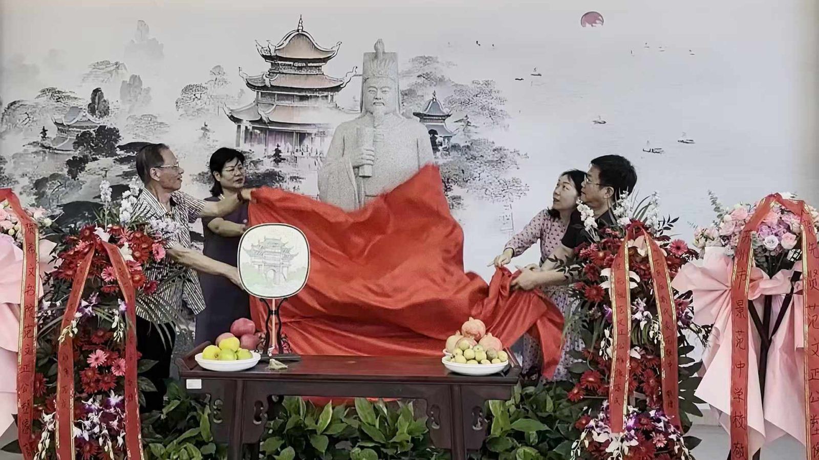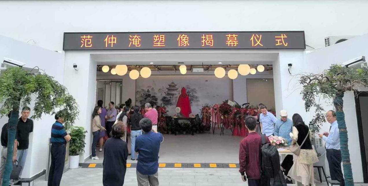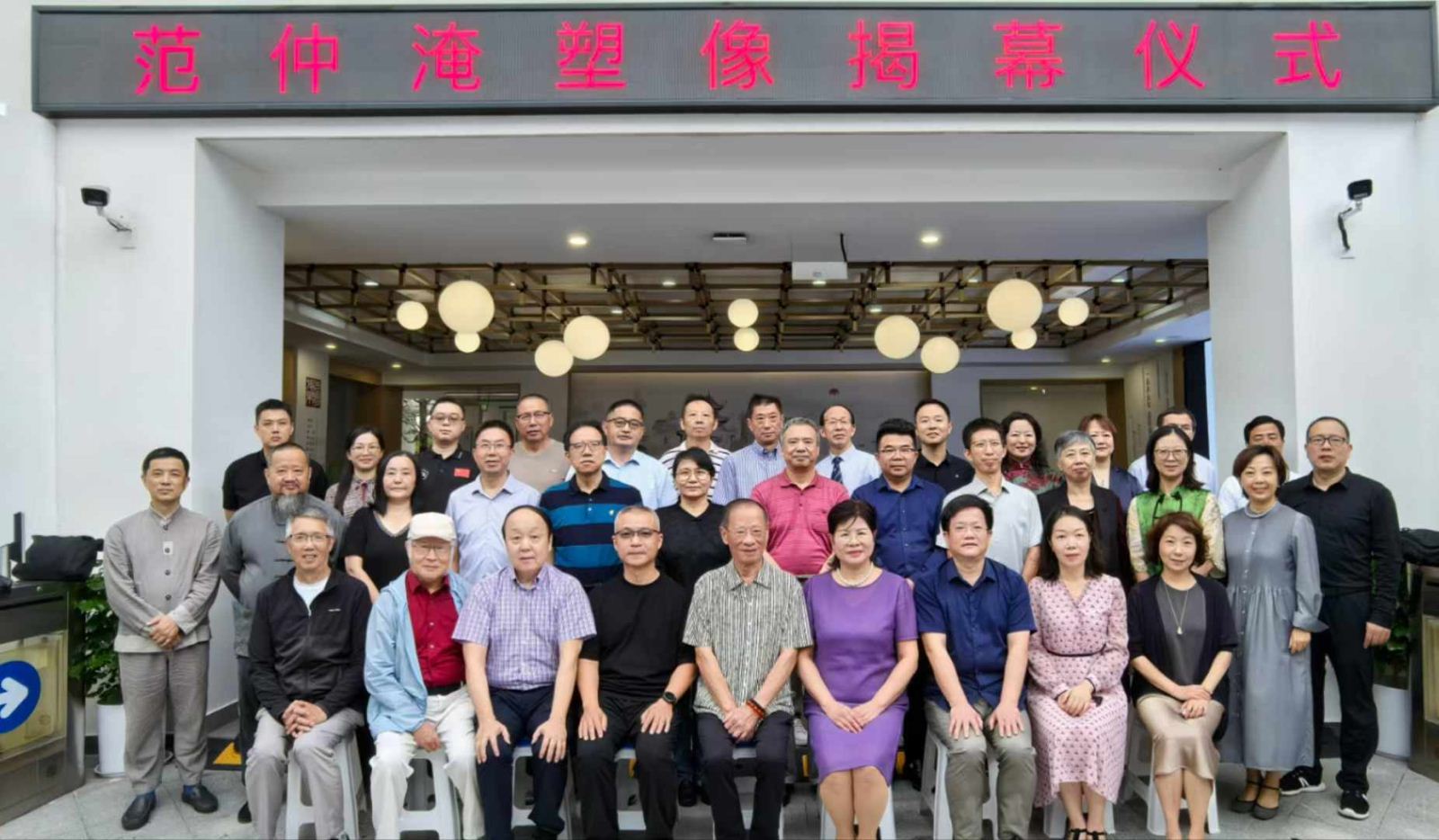 揭幕仪式现场庄严肃穆,气氛热烈而凝重。在主持人的引导下,苏州市范仲淹研究会名誉会长范敬中、会长顾苏云,景范中学党委书记任颖、原书记沈宗健共同为范公像揭幕。当红色幕布缓缓揭开,恰似历史与现代的深情对话,将揭幕仪式的氛围烘托得无比绚丽。