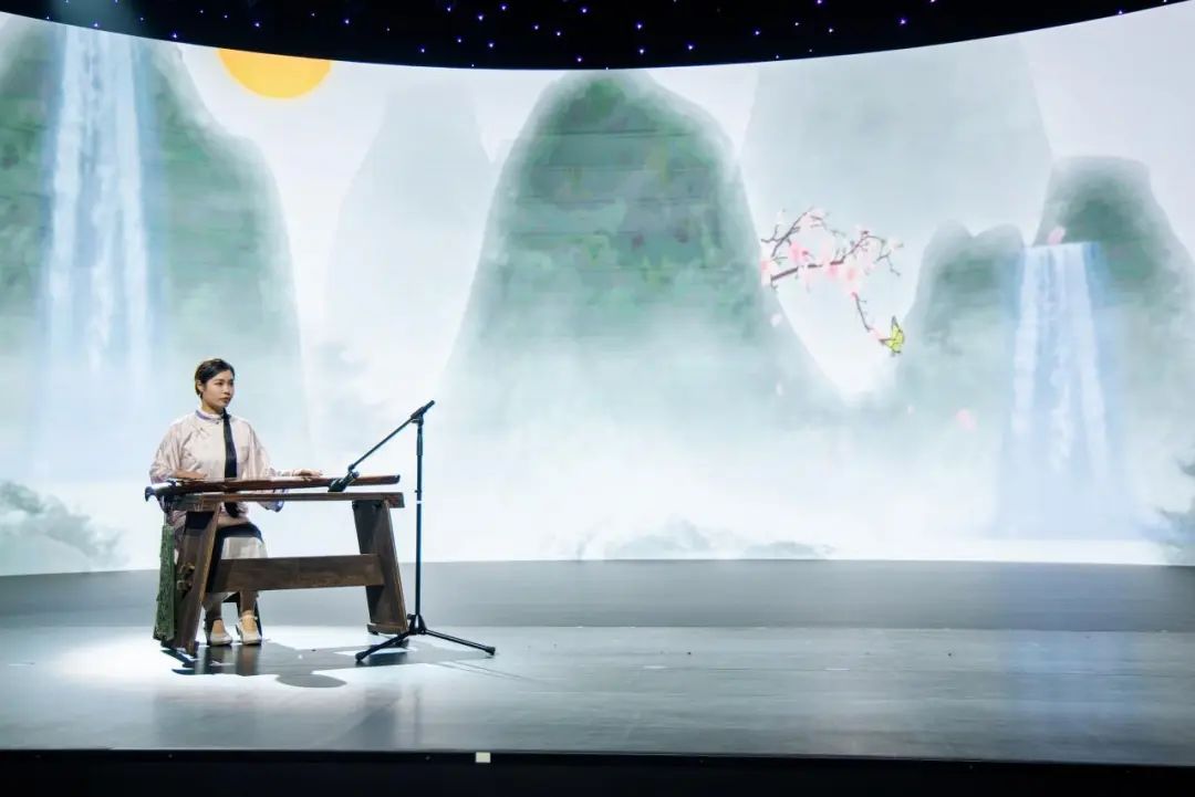 在XR背景下,独舞《九州同》带来别样的艺术享受。之后是MV主创人员访谈环节,盛小云、施斌、胡磊蕾分享了创作背后的故事,如盛小云与施斌的首次合作、胡磊蕾创作时的准备与困难、施斌排练和演绎作品的心情等,还探讨了作品的创新点以及对范仲淹的深刻印象等话题。