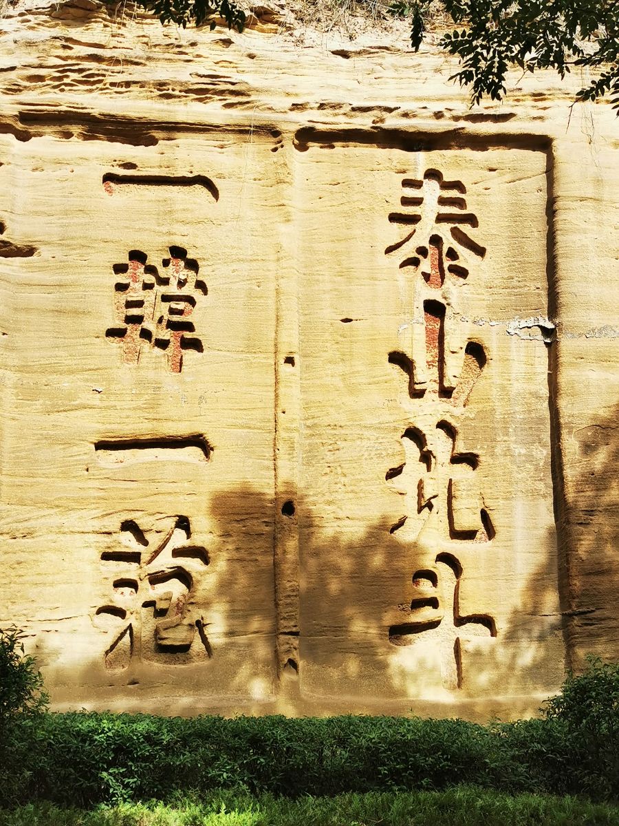 山下“嘉陵书院”遗址(烽火台旁)、“范公井”遗址(宝塔山入口处电子屏前公路边),还在诉说着范公关注民生、重视教育的忧国忧民情怀。宝塔山下的摩崖石刻,更是真实记录了范公驻守延州抗击西夏的丰功伟绩,“高山仰止”、“出将入相”、“一韩一范,泰山北斗”、“胸中自有数万甲兵”,是当地人民对范公的由衷肯定,而范公亲自题写的“嘉陵山”三个隶书大字,更是苍劲有力,豪放洒脱。参访团一行无不虔诚膜拜,驻足拍照留念。