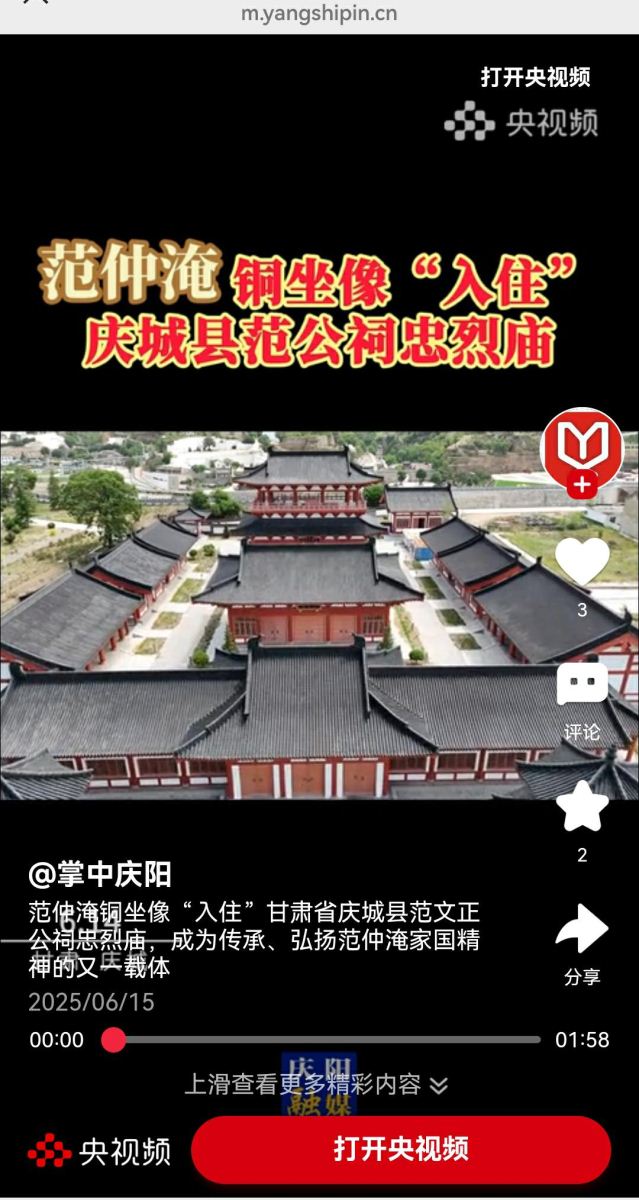 2025年6月14日,古庆州南城范文正公祠忠烈庙前,范仲淹将军铜像奉安落成。仪式前夕,久旱的庆阳突降甘霖,仿佛是范公恩泽再临。